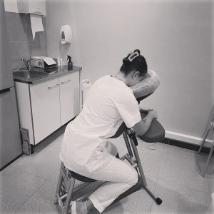 Tous les mois, j’interviens à l’Hôpital des jockeys de Chantilly pour permettre aux salariés de prendre une pause bien-être afin de lutter contre le stress et les troubles musculosquelettiques.