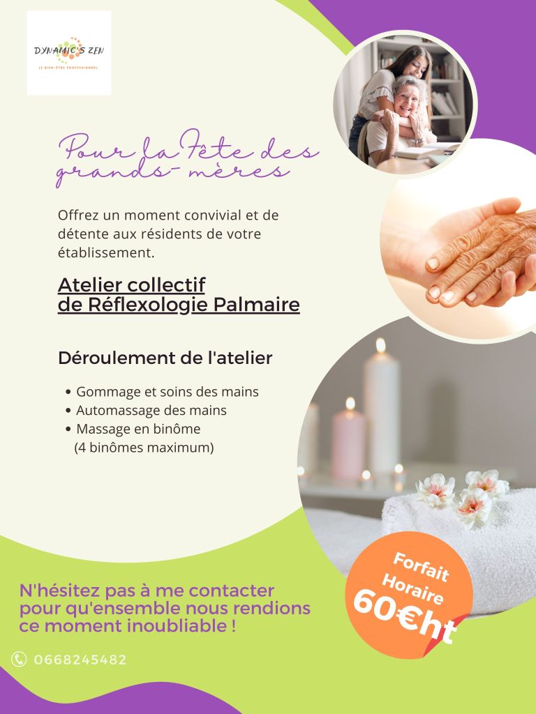 La fête des grands-mères se rapprochant je vous propose d’offrir un moment unique pour cette occasion : Un atelier collectif de Réflexologie Palmaire.