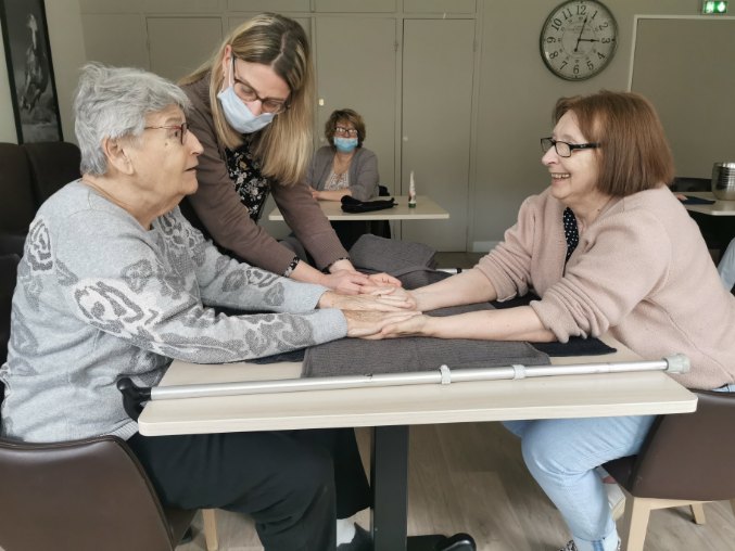 Je suis intervenue dans deux EHPAD pour deux occasions différentes. Tout d’abord à la résidence ADEF les Acacias de St Just en Chaussée pour la journée des droits des femmes, puis à la résidence Korian La Grange des Prés de Lamorlaye pour leur journée de campagne pour les aidants. Deux journées où les participants ont pris le temps de prendre soins de leur mains et celles des autres afin de pouvoir créer du lien et découvrir les bases de la Réflexologie Palmaire. Une très belle expérience !
