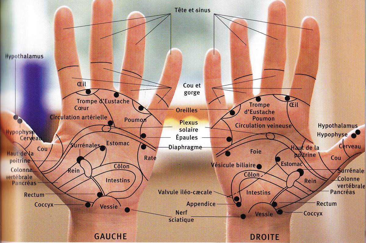 Technique de digito-pressions non thérapeutique, partant du principe que les mains sont une représentation miniaturisée du corps humain. Ainsi toutes les parties du corps, sont stimulées grâce aux zones réflexes dans le but d’aider les personnes au ressourcement, de renforcer et de rétablir l’équilibre énergétique, en créant des sensations de bien être physique, psychologique et émotionnel.
