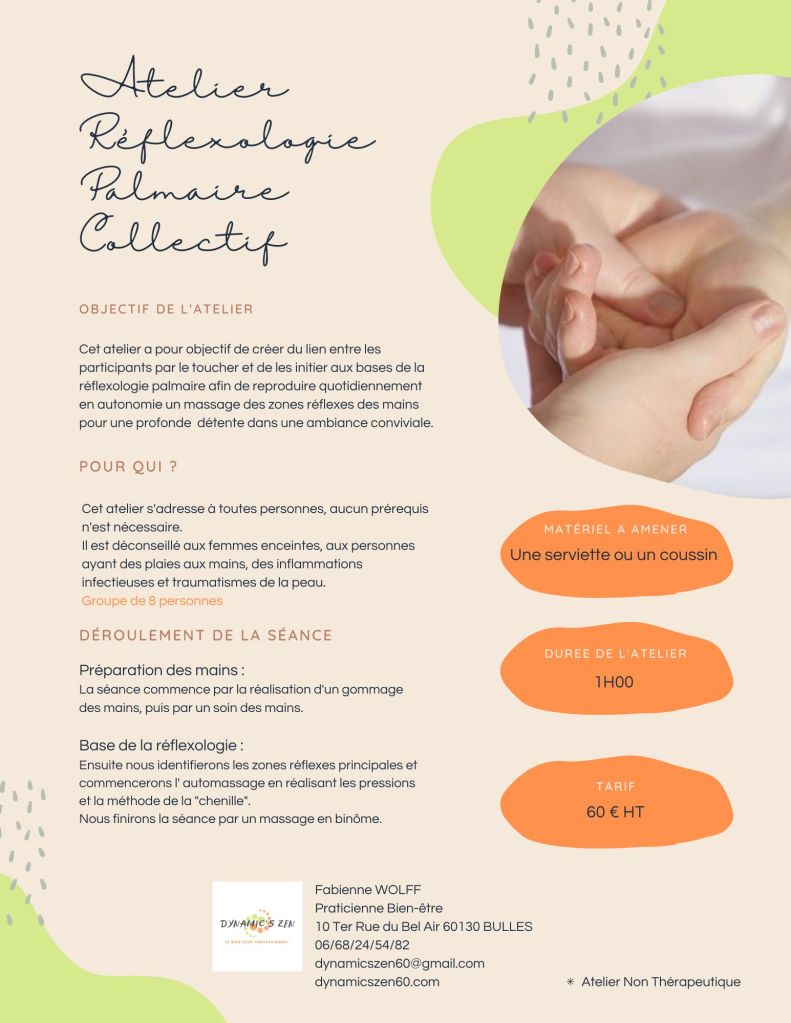 Possibilité d’une séance collective de Réflexologie Palmaire pour un groupe de 8 personnes pour un événement particulier comme un team building, un enterrement de jeunes filles, un moment entre amis et famille…